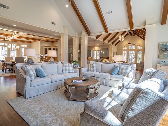 Truly a TURNKEY lake access home as it comes with all furnishings, smart technology and devices, to include dishes, pots, pans and linens! Must see to appreciate all of the upgrades that have been done! Interior designer came in and updated the home! (See attached docs for all upgrades) The openness and size of this exquisitely maintained house will delight you. Built for entertaining and featured on the Tour of Homes! Stunning lake access home with 24-hour dock has water views and looks across a large, gently sloping mown common area. The renovation and upgrades are stunning in this open floorplan which features walnut hardwood floors with extensive trim and custom millwork throughout. Home features completely renovated powder rooms on both levels. The renovated gourmet kitchen is complete with Wolf cooktop, two new refrigerators, new garbage disposal, double ovens, warming drawer, and two islands. There's a keeping room off of the kitchen leading to screened porch with stone fireplace. The dining room, with wet bar, features a coffered ceiling and large bay window. Vaulted ceiling in living room with a stone fireplace (one of five). The master bedroom has large closets, new carpet, and oversized bathroom with new vanity and mirrors, and guest room with ensuite bath and new carpet on main. There is more than ample outdoor entertainment space with an EZ breeze screened porch, vaulted ceilings and multiple fireplaces. Open deck and grill deck make cooking out part of the entertainment. The lower level features a great room, 1,500 bottle wine cellar with separate cooling system, three bedrooms (one includes bunk room), three ensuite baths, powder room, wet bar, covered porch and a plethora of storage. Home also features an elevator and three-car garage with built-in storage. ALL furnishings included (furniture, SMART TVs, dishes, etc.) Seller is making a Club membership available.