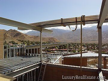 Architecurally significant, this nearly completed custom design Jim Cioffi masterpiece redefines the contemporary lifestyle. Clean, crisp lines afforded by steel construction remind you of the simplicity and elegance of mid-century architecture. Architectural and functional elements include a steel sculpture carport and, perched above the garage, a guest casita with breath taking views of the Indian Canyons and Mt. San Jacinto . The great room has a dramatic sloped clerestory that focuses the eye on the infinity edge pool and the spectacular canyon backdrop. The master suite is set in its own separate wing and includes an adjoining office. This is a one-of-a-kind sculpture home.