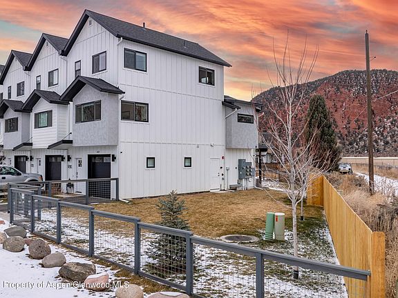 Looking for easy maintenance free living, near new construction, a huge yard for your pets, views and terrific location? Check out this end unit Solstice Townhome located in South Glenwood Springs minutes to town, walking distance to Sopris Elementary and just 20 minutes to Sunlight Mtn Resort! This 4 bedroom, 4 bathroom home with a one car garage offers a modern design with clean lines is a thoughtfully laid out multilevel floor plan. When you walk into the home, you'll enter on the garage level that features a laundry area and an en-suite bedroom with access to the fenced in yard, from there you can also head downstairs to the finished basement with a game/media area and another bedroom and bath, or upstairs to the elevated living area where you'll find an open living floorpan where the kitchen, dining and living room are which also extends out to a large deck with incredible views of the red cliffs and Mt. Sopris. Upstairs you'll find two more bedrooms with vaulted ceilings and views along with a shared bathroom. This could quite possibly the perfect setup for those looking for townhome living, but also with a yard large enough to throw the ball around with the kids or dogs.