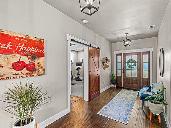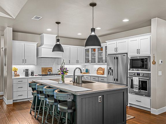 Tucked at the back of Twin Creeks in Central Point, this pristine single-level home is everything! Custom built by Vision Homes, this one-owner home was thoughtfully designed in collaboration with the seller. Some of the quality touches include hardwood floors, quartz counters, vaulted ceilings, custom tile in the bathrooms, oversized bedrooms, oversized garage, and a beautiful gas fireplace with custom built ins.