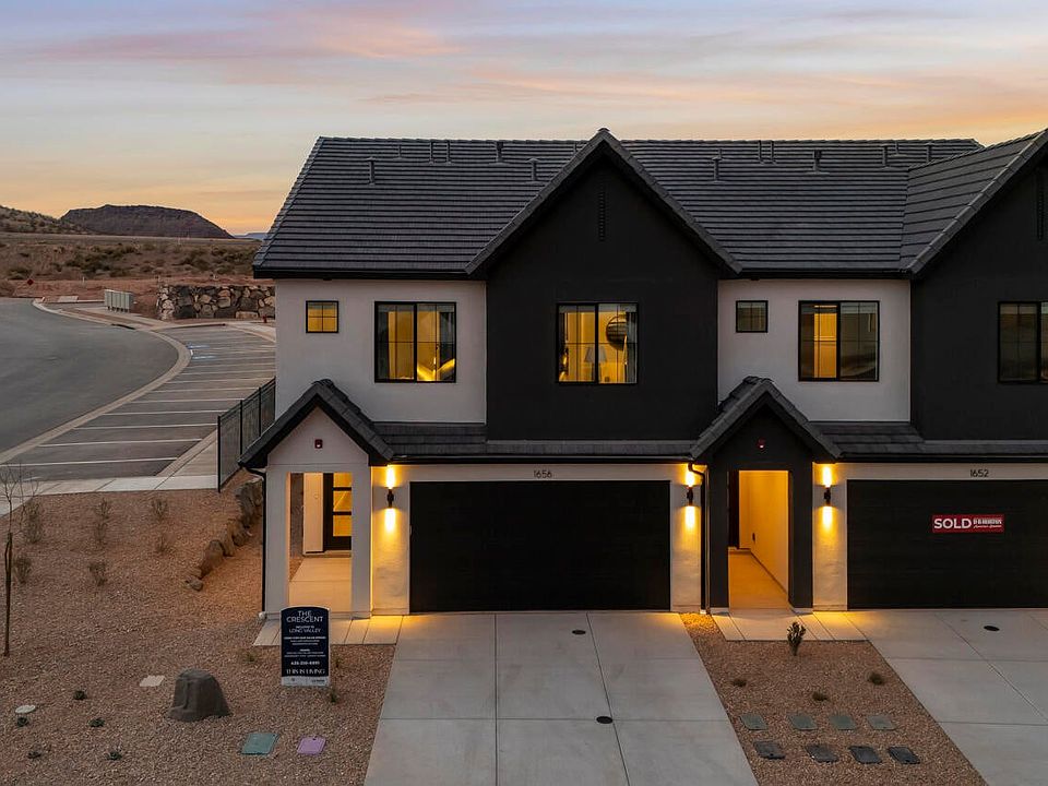 END UNIT NIGHTLY RENTAL APPROVED!!! You'll find a smartly designed townhome with the Crescent floor plan in our Long Valley community, in Washington City. The Crescent is a 2-story townhome with 4 bedrooms, 4.5 baths, a 2-car garage. On the first floor, the home can be accessed through a covered front porch, or a garage that leads to the kitchen. The main living space is an airy, open-concept kitchen, nook and family room with plenty of space. The attractive kitchen has a large center island, stainless steel appliances such as a dishwasher, range, and microwave as well as shaker-style cabinets. A covered patio on the main floor provides shade for outdoor dining and relaxing A highlight of the Crescent floor plan is that each of the second floor's four bedrooms has its own en suite bathroom, which lends the home to use as a short-term rental property. The second story also has a loft space that can serve as a gathering or media area, and a laundry room ideally placed near all the bedrooms. For those seeking both privacy and room to gather, the Crescent floor plan in Long Valley provides both. Enjoy the community pool, pickleball courts, outdoor ping pong & cornhole, children's playground, and more! Ask me about our included generous home warranty and smart home package! Receive $13,000 toward closing costs with our preferred lender DHI Mortgage! The actual home may differ in color, material, and/or options. Interior pictures are of a finished home of the same floor plan and the available home may contain different options, upgrades, and exterior color and/or elevation style. Square footage figures are provided as a courtesy estimate only and were obtained from building plans.