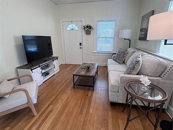 Fully Furnished 2-Bed, 1-Bath Home – Move-In Ready or Investor’s Dream! This beautifully updated gem, just minutes from Interstate 35 and 10 minutes from downtown Dayton, is perfect for first-time homebuyers or investors seeking a turnkey rental. Includes all appliances, furniture, decor, cookware, linens, and a stocked closet with essentials like toilet paper and bedsheets – even Ring cameras convey! HVAC, exterior AC unit, and water heater all replaced in 2024! Enjoy refinished hardwood floors, updated lighting, and a renovated kitchen, complete with new cabinets, countertops, stainless appliances, and subway tile backsplash. The bathroom has been updated with new luxury vinyl plank, toilet, tub, vanity, and shower tile. New glass block windows installed in kitchen and basement. Spacious bedrooms, an inviting front porch, and a quaint back patio offer comfort and charm, while a long driveway and two-car detached garage add convenience. Don’t miss this rare opportunity to own a fully equipped home or investment property in a prime location! Schedule your showing today!