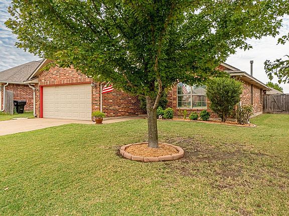 Other highlights include a convenient laundry room with drying rack, generous storage throughout, and ceiling fans in all secondary bedrooms. Outside, you’ll love the extended patio and large backyard — perfect for BBQs, games, and making memories. Easy maintenance sprinkler system. Mature maple tree in the front yard, and wide open spaces in the back yard offer room to move about without feeling cramped. Close proximity to Oakridge Elementary, Costco, Target, and all the shopping, dining and entertainment SW OKC/Moore has to offer. Easy commute to University of Oklahoma, Downtown OKC and Tinker A.F.B.