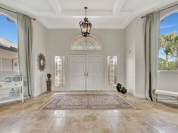 Spacious custom home on a stunning lot in Piper's Landing! Enjoy breathtaking golf and lake views from every room. This one-of-a-kind home features gorgeous marble floors, soaring volume ceilings with exquisite detailing, and a double-sided gas and wood fireplace between the living and dining rooms. All sliders are impact glass doors, opening to a new saltwater pool (2020) and electric screens. Additional upgrades include two new A/C units (2021), water heater (2020), new carpet in the master bedroom, garden lighting illuminating the property, a state-of-the-art kitchen, and a new metal roof (2024). Boasting spacious closets and situated on a quiet cul-de-sac, this home offers luxury, comfort, and privacy. Don't miss this rare opportunity--schedule your showing today!