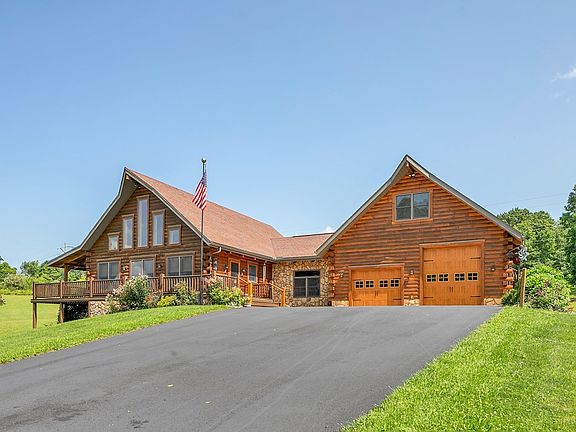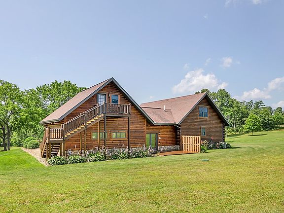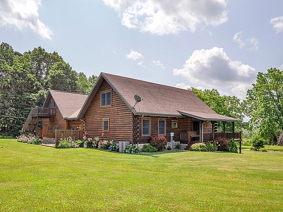 This is the country living you've been dreaming of in this breathtaking log home nestled on 8 acres of peace & tranquility! Every little detail has been thought of from the zoned in-floor radiant heating throughout the main level of the house, basement, breezeway & even the attached garage which boasts insulated doors. The efficiency & comfort of this approach to heating cannot be ignored. The immaculate quartz countertops compliment the custom made hickory cabinets beautifully. The house itself is true log home construction utilizing an open beam concept with stationary windows in the peak to look out on nature at its finest! The extra storage area above the garage has the potential to be finished into additional living space & the pond that was built in 2019 greets you as you pull up the paved driveway that was created in 2021 & sealed in 2023. To top it all off, the entire exterior of the house & garage have all been washed & stained in 2023 so there is nothing left to do but enjoy!