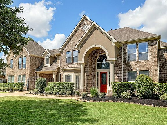 Wonderful bright and open Trendmaker home has new interior paint May 2020, New roof May 2018, Updated kitchen stainless steel appliances including double convection ovens and a new dishwasher May 2020. The island kitchen has 2 walk-in pantries including one with custom built-ins that could be a silver closet or butler's pantry. Master with sitting area down plus second fireplace. Study with built-in desk for 2 and wall of cabinets and shelves. A large room up allows for flexibility of a media room, large game room, additional living or sixth bedroom. Flexible floor plan includes a large guest suite down with full bath and kitchen/kitchenette which could also be used as a game room down. Guest suite could easily be converted back to 3rd or 4th garage. Double gated motor court plus a boat pad behind the fence. A backyard paradise with a large sparkling heated pool and spa plus a outdoor covered outdoor entertainment area with an outdoor kitchen and a third fireplace.