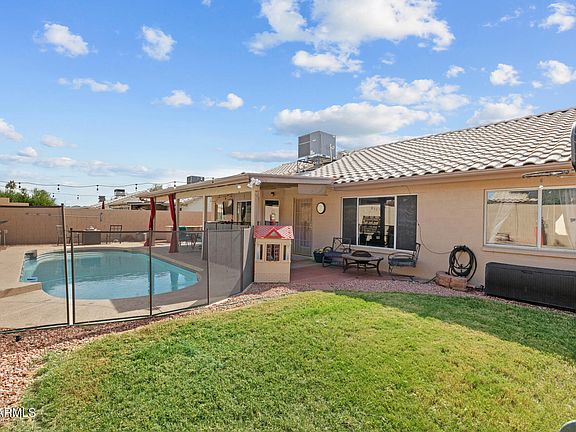 Your Dream Home Awaits—Spacious, Bright, and Perfect for Entertaining! Discover this beautifully maintained 3-bedroom, 2-bath home offering 1,738 sq. ft. of light-filled living space in a quiet, desirable neighborhood with easy access to the 101. Designed for comfort and functionality, the split floor plan features vaulted ceilings, tile and laminate flooring, and an open layout that feels both airy and inviting. Enjoy the best of Arizona outdoor living in your private backyard oasis—complete with a sparkling pool, expansive covered patio, built-in BBQ area, and pet-friendly grassy space perfect for relaxing or entertaining guests. The 3-car garage provides ample storage, and a new AC unit (installed November 2024) ensures year-round comfort and efficiency.