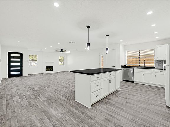 Welcome to 17414 Seven Pines Dr in Spring, TXa "a fully renovated 3-bedroom, 2-bath home in Klein ISD featuring a modern open layout with wood-look tile flooring, recessed lighting, and a white brick fireplace. The stylish kitchen offers black granite countertops, a gray tile backsplash, stainless steel appliances, and a large island with pendant lighting. The primary suite includes an elegant en-suite bathroom with a frameless glass shower and matte black fixtures, while the secondary bathroom features a beautifully tiled tub and updated finishes. Enjoy a private fenced backyard with a covered patio, a two-car garage, and convenient access to Highway 249, FM 1960, and Grand Parkway (99)a "all just minutes from shopping and dining. Don't miss out on this beautiful home! *Please verify all room dimensions and school information.*