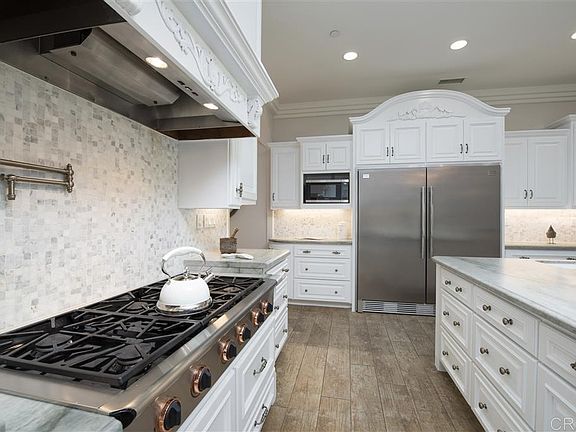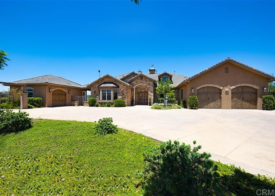 Overlooking the Grasslands Preserve and less than 2 miles to Mt Woodson "Potato Chip Rock" hiking destination, this one design French Country home is located in the private 18 home enclave known as "Highlander" in Ramona's highly desirable "West End". The property of appx 8.3 acres consists of the elevated 360' home-site extensively landscaped fully fenced sides and rear yard, expansive patios and designated future pool area, meadowlands and riparian oak woodlands.
