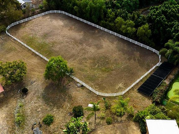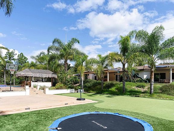 Live the ultimate California lifestyle on 3.56 acres at 17412 La Brisa, a property ideally suited for horse enthusiasts with three pristine horse corrals & a riding ring. Situated in close proximity to the Del Mar race tracks, this luxurious 5-bedroom, 4.5-bath estate seamlessly combines equestrian amenities, including a riding ring and spacious paddocks with enclosures, with a flowing floor plan that harmoniously connects indoor and outdoor spaces, creating a serene oasis. The backyard serves as an outdoor paradise, offering a putting green, an outdoor BBQ area with eight bar stool seats, and a charming cedar pool house/casita. Entertain with ease, thanks to the pool featuring a slide and jacuzzi, a mini golf course, two basketball courts, and cozy nights by the outdoor fire pit. For those who enjoy sports, there's even space for a private tennis court. Special features of this property include paid off solar, energy-efficient design, and a 3-car garage. Solar is paid off. Pool solar is present just needs to be fixed. Horse riding ring can be parceled off and sold or can be built on. Furniture can be sold for a turnkey experience.
