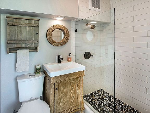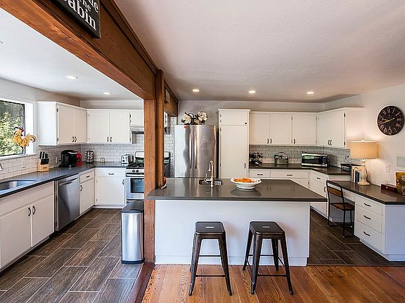 Freshly renovated and elevated riverfront home. Newer kitchen and baths. Newer appliances. Laundry room and ample parking. Kitchen features views of the river, newer appliances, ceasarstone counters, subway backsplash, newer flooring, main and prep sink, seating, work station, and lots of counter space. Kitchen is open to the dining area, sitting area, and family room. Master is large and private with newly renovated master bath, which features step-in shower and programmable warm floors (oh-so nice on those chilly nights). There is great light and a slider to the back deck. Main level also includes another bedroom and full bath (recently renovated) with shower over tub and warm floors. Upstairs is large room furnished as a bedroom. This private space has great light, a skylight and a tree house feel. Lots of nice touches throughout: solid core doors; most lights on dimmers; reading light above chair is sitting area; supplemental deck lighting; fire pit on deck; BBQ, etc. The natural beauty of the location and river are unparalleled. Located about 5 minutes from downtown (Summer bridge is faster from June to September). Sitting on the shore or walking the river, you will see cranes, river otters, fish jumping, foxes, deer and more. Kayak up to Johnson’s Beach in about 15-20 minutes. 20 minute drive to HWY 101 (in Santa Rosa) and Sebastopol.