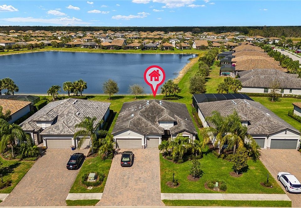 Located in the heart of Estero with resort-style amenities, this opportunity tends to be hard to beat. This lake view property is known as the Summerville floor plan which is an open concept, 1-story home with a 3-car garage. Inside offers just over 2,400 square feet which includes 3 spacious bedrooms, 3 full bathrooms and a den that many will also utilize as a bedroom. With this layout you'll notice the living area seamlessly flows into the kitchen and eating area. Within that very kitchen, you have stainless steel appliances, sleek granite countertops, an oversized island/ breakfast bar, walk-in pantry, and ample cabinet space. On it's own side of the home, you have your spacious primary suite that looks out and over the lake. Features in there include a bathroom with a walk-in glass shower, a separate tub, private bathroom, walk-in closet, and dual sinks. To give ample privacy to everyone residing, this home hosts two other guest rooms and a den on the other side of the home. Stepping outside onto your screened in lanai, you have the luxury of enjoying the long lake views for as long as you'd like! ALSO - You have plenty of room to put in your own custom pool! Outside of your home and within the gates of The Place at Corkscrew amenities include a resort style pool with 100-ft long water slide, café and marketplace, kids club, playground, tennis courts, pickleball courts, two story fitness center, basketball court and more! Come see why The Place has been one of the best selling communities. Your neighbors are waiting!