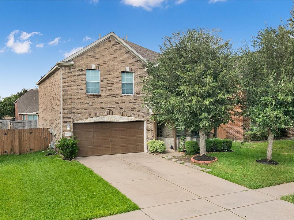 Sought-after Aliana! This all-brick 2-story home is move-in ready with a 2021 renovation & recently replaced AC. The 2,509 sq ft layout includes 4 bedrooms, a media room, and a private study. The kitchen features recent Whirlpool appliances. The primary suite offers a unique adjoining flex room, perfect for a nursery or office. In addition to 2.5 baths, there's a convenient bonus shower in the laundry room. Entertain in the large backyard on the expansive stamped concrete patio. Unbeatable location next to a park and a short walk to the community pool and clubhouse. Zoned to exemplary schools with easy access to highways and shopping. This home has NEVER FLOODED!