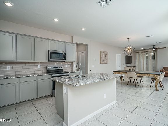 Welcome to this charming home in the vibrant North Copper Canyon community, where lifestyle meets comfort. This original-owner residence is ideal for first-time homebuyers and offers 3 bedrooms and 2 baths across 1,500 square feet of well-designed living space. You'll love the open-concept great room, ideal for entertaining or cozy nights in, with durable tile flooring in the main areas & soft, plush carpet in the bedrooms for added comfort. The stylish kitchen is a standout, featuring light grey cabinetry, gleaming granite counters, a sleek subway tile backsplash, stainless steel appliances, and a central island with a breakfast bar—perfect for casual meals or morning coffee. Step outside through sliding glass doors to a covered patio and extended paver area, all set in a low-maintenance yard that gives you more time to enjoy the neighborhood's incredible amenities, including a resort-style pool, two expansive parks with dog parks, walking trails, sports fields, playgrounds, and splash pads. The serene primary suite offers a private retreat with a dual-sink vanity, oversized shower, and generous walk-in closet. Additional perks include a 2-car garage with epoxy flooring. This home blends modern comfort with community charman ideal place to start your homeownership journey.