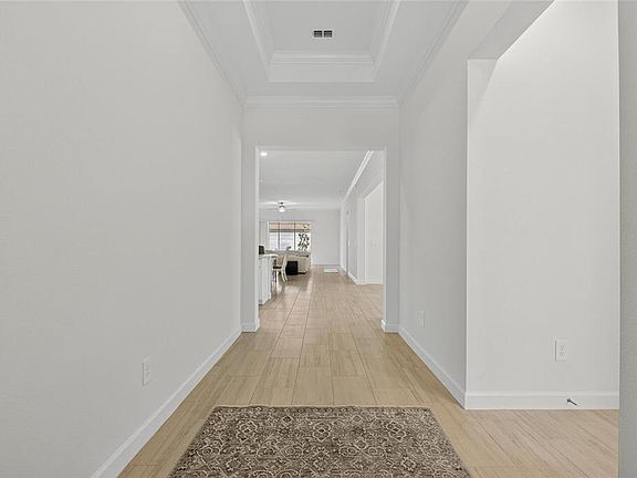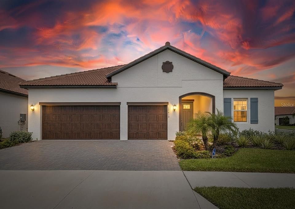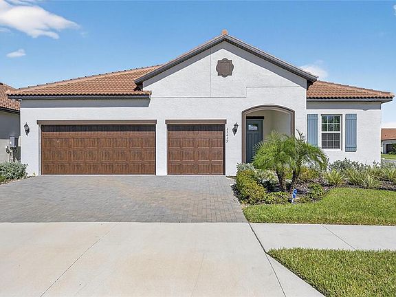 Welcome home to this beautifully upgraded residence at 17415 Holly Well Ave. Nestled in a vibrant and well-connected community just south of Tampa, this home offers modern luxury, vaulted tray ceilings and designer finishes from floor to ceiling. The inviting open-concept layout flows effortlessly from the gourmet kitchen into a bright and spacious great room where family and friends will gather with ease. The heart of the home is the chef-inspired kitchen, anchored by a generous island and quartz countertops, tall shaker cabinetry, stainless-steel appliances and a dedicated butler’s pantry that expands your prep space and storage. Adjacent, a walk-in pantry ensures every detail is covered. The wood-look tile flooring spans the main living areas, lending warmth and continuity while making maintenance simple. Three private bedroom suites provide comfort and flexibility, with the primary retreat designed for total relaxation. The master bedroom features a tray ceiling, plush carpeting and a window that invites natural light without sacrificing privacy. Once inside, you’ll step into the spa-inspired master bath, a soaking tub and oversized walk-in shower, dual vanities with elegant fixtures, and a custom closet that conveniently connects directly to the laundry room. Whether it’s settling in at the end of the day or entertaining, the design emphasizes flow and ease. Outside, the covered lanai overlooks a generous backyard, offering a tranquil setting for morning coffee or an evening wind-down. With plenty of space to personalize the outdoor area, this home invites you to enjoy both ease and potential. The oversized three-car garage (2-car + golf-cart capacity) offers abundant storage and workshop potential thanks to a walk-up attic space. Positioned for convenience, the home is minutes from dining and shopping in Wimauma and Sun City Center. Local favorites include SOL Mexican Restaurante and Don Julio’s Wimauma. For healthcare and peace of mind, the area is served by the full-service HCA Florida South Shore Hospital in Sun City Center, offering 24/7 emergency care and advanced services. Easy access to major roadways places the excitement of Tampa and Gulf Coast beaches within reach, while preserving the peaceful, suburban-Florida backdrop you’ll love. Whether you’re entertaining in the chic kitchen and open living area, relaxing in the luxurious master suite, or enjoying the expansive lot and garage space, this home checks every box for today’s lifestyle. Don’t miss the opportunity to call this turnkey retreat your own. Schedule your private showing today!