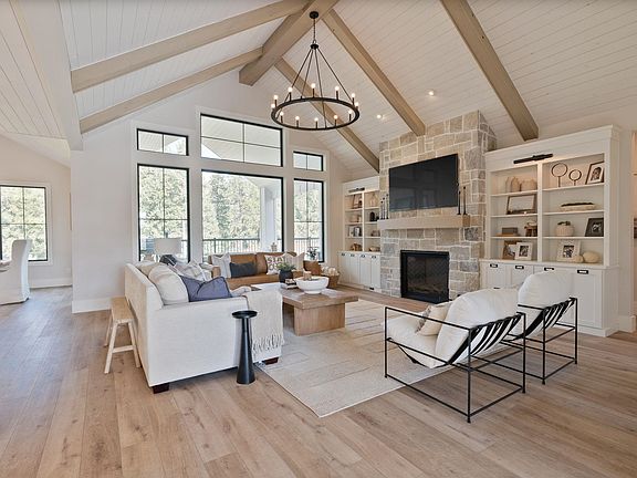 Don’t miss this rare opportunity to own a newer custom home in the heart of Green Bluff! Nestled on a private 10-acre parcel with breathtaking views of Mt. Spokane, this stunning modern farmhouse blends luxury, comfort, and Northwest charm. Inside, vaulted ceilings with box beams create a bright, open atmosphere, the thoughtfully designed office features soaring 14’ ceilings and a custom built-in desk -perfect for working from home. The chef’s kitchen is a showstopper with a 48" gas range, hidden pantry, and large island for entertaining. The main-floor vaulted primary suite offers a peaceful retreat with an ensuite bathroom and walk-in closet. Fully finished basement complete with a home gym and wet bar with island. Step outside to an expansive covered deck, hot tub and beautifully landscaped grounds. Enjoy starlit evenings around the sunken fire pit. Enormous 40x80 shop with game room & bathroom. Located just minutes from family-owned orchards, farms, and beloved year-round seasonal festivities.