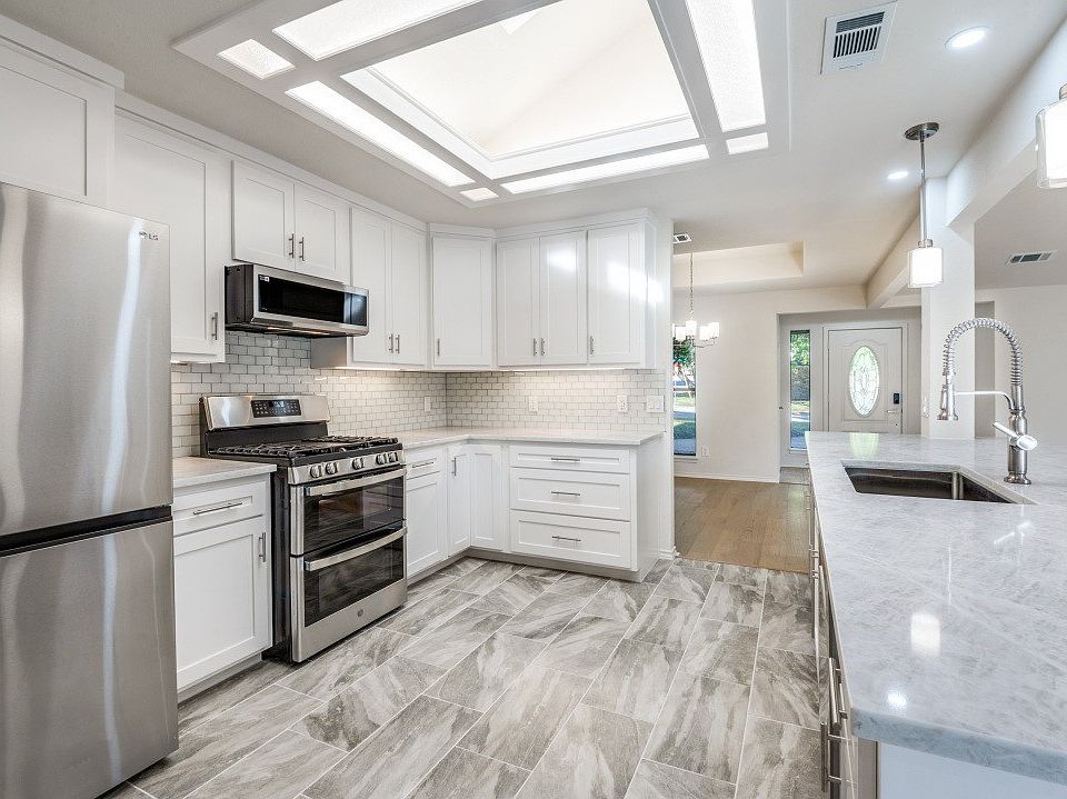 Beautifully updated five bedroom one story home, nestled on a peaceful creek lot conveniently located in the heart of North Dallas. Large living room with floor to ceiling brick fireplace and spacious wet bar. Nicely updated kitchen with new cabinets, gorgeous quartz countertops, gas range with double oven and two dishwashers. Stunning newly remodeled primary bathroom with large walk-in rain shower. Secondary living area could function as a large office with a wall of windows overlooking the creek. Newly converted garage adding two bedrooms and two full bathrooms with a separate private side entry. Open floor plan with loads of natural light situated on an oversized corner lot.