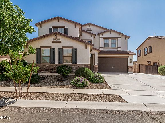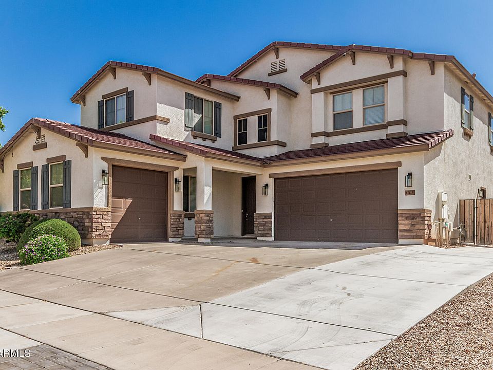Perfectly designed for both comfort and elegance, this stunning 6-bedroom, 3 full bath home features a 3-car garage and RV gate! The open layout showcases wood-look tile, archways, ceiling fans, and neutral tones for a warm, inviting feel. Enjoy a formal dining room and a spacious living area with a sleek fireplace. The gourmet kitchen offers granite counters, stainless steel appliances, a pantry, and a large island. Upstairs, a versatile loft complements the luxurious primary suite with dual walk-in closets, dual vanities, and a jetted tub. The backyard is perfect for entertaining with a covered patio and pergola. Located in a beautiful community with a sparkling poolâ€'this home truly has it all!