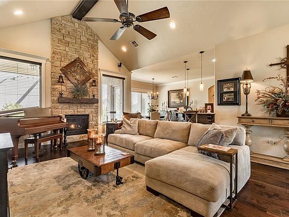 Stunning! Elegant! Light & Bright! Versatile use of space! This one has it all! Perfect layout! Sizable rooms! Great Closets & plenty of storage! Rich wood & tile floors throughout! Carpet only in beds and upstairs! Living room w/cathedral ceiling & beams, stone fireplace w/mantle & gas logs! Bose SS speakers, XL ceiling fan! Spacious Study W/closet! Very spacious kitchen w/pull outs & drawer dividers installed. Walk-in pantry, dbl ovens, island & breakfast bar w/granite tops! Privately located Master ensuite features barn door to bath, walk-in shower, jacuzzi tub & well redesigned closet w/access to laundry room w/abundant storage! Upstairs features add'l study area w/blt in desk!Sizable optional room for bedroom, Liv, theatre or flex room! Full bath w/walkin shower & spacious walkout attic storage. Perfect backyd w/Lg. Covd patio! Beautifully landscaped & perfectly situated for sun protection. 3 car gar w/separate H&A Unit! Close to park & Pool! Did I mention this one has everything!