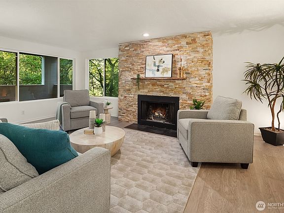 Welcome to effortless condo living in the heart of Shoreline. Recently updated & freshly painted this 2-bedroom condo sits in a vibrant, amenity-rich community. An inviting living room centers around a stone fireplace & flows to a covered deck for year-round use. The remodeled kitchen with SS appliances & breakfast bar anchors the main living space, while the primary suite features a spa-like ensuite with heated floors. The 2nd bedroom offers flexible use for guests, office, or hobbies. Enjoy the ease of in-unit laundry, ample storage, & a well-run HOA offering: sauna, community p-patch, + dedicated covered parking. With easy access to downtown, transit, & Shoreline’s parks + amenities, this condo blends comfort, convenience, & community.