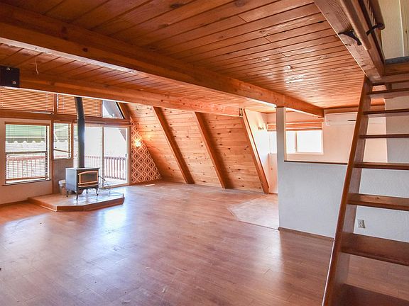 Beautiful views in Willow Springs! The home sits above the road with plenty of parking. The entry level features an open floorplan, vaulted pine ceilings, 1 bedroom, full bathroom and laundry. Upstairs is a large loft with 1/2 bathroom. Downstairs, on a separate entrance is the bonus room/possible 3rd bedroom. Features included central heat and air, mini-split system and a woodstove. Paved driveway and multiple parking areas. Located in Willow Springs with community pond, club house, tennis courts and park areas.