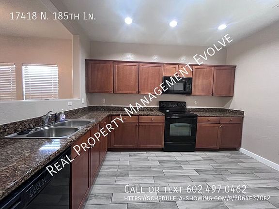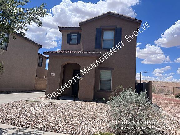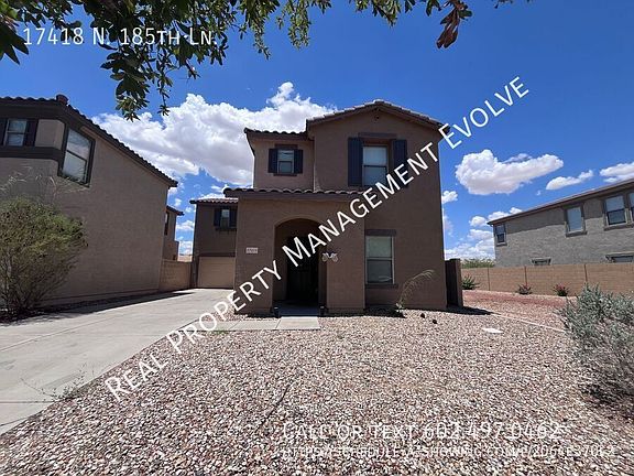 Great 3-bed / 2.5-bath Surprise home is available! BRAND-NEW toilets and BRAND-NEW laminate flooring upstairs. Kitchen features granite counters, ample cabinet-space, pantry, and breakfast bar. Primary bedroom has ensuite bathroom with separate garden tub and shower, dual sinks, and large walk-in closet. Separate laundry room and attached 2-car garage. Big backyard with low-maintenance gravel landscaping. Schedule a tour!