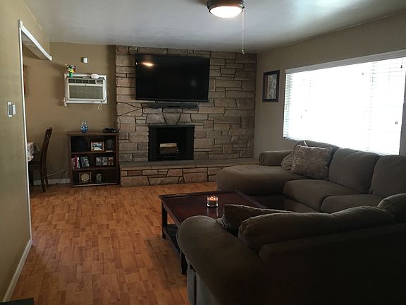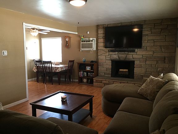 This charming home features an upgraded kitchen with newer cabinets and countertops. Energy efficient dual pane windows with custom blinds throughout. Ceiling fans in all rooms. Bedrooms have carpet flooring and cedar closets. Relax by the fireplace in the living room or enjoy sitting outside under the covered patio. This nice property also features a large lot with a low maintenance front yard with decorative rock landscape, central air conditioning, and roll up garage door with automatic garage door opener. Walking distance from schools and parks. Conveniently located near shopping and the 210/15/10 freeways. Don't miss out on this opportunity to live in the beautiful city of Fontana.