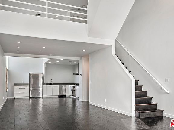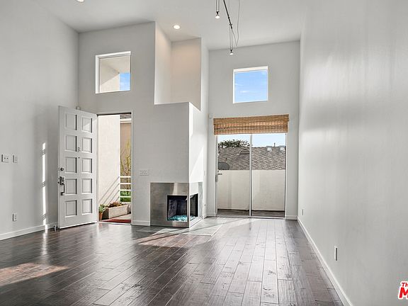 Minimalism and voluminous spaces combine harmoniously in this multi-level Architectural townhome in Westwood. Calm, cool tones and textures create a sense of peace while southern exposure ensures abundant ambient light throughout the day. The main level consists of an open-concept living, dining, and kitchen area. The living room features a lovely fireplace and a spacious tiled patio. Large windows showcase the high-end kitchen. Stairs lead to the mezzanine level featuring a loft perfect for office or intimate lounging area. Upwards reveals a guest bedroom with lovely city views and ensuite bath. On the top level, the oversized main bedroom suite features high ceilings, sitting area, and spa-like bathroom. Direct access to the unit is provided through the off-street private entrance or exquisitely-finished two-car garage with 30-AMP electric charging station and laundry area. A short distance to UCLA, Century City, and Beverly Hills.