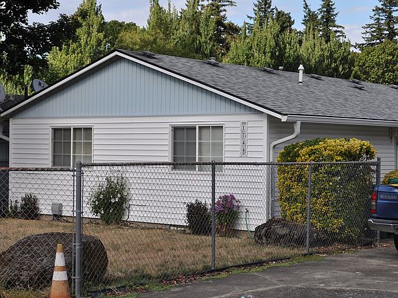 Do not disturb tenants-Hard to find 3 bed/2 bath & 2 bed/2 bath 1 level duplex-Updated units incl kitchens w/oak cabinetry, all appliances & tile floors-Master bedrooms incl full baths w/tile floors-Laminate flooring in living areas & carpeted bedrooms- Forced air gas heat, gas hot water & gas fireplaces-Energy efficient vinyl windows & easy care vinyl siding-Detached oversize 264 SF single garages-Recent comp roof-Generous fenced yards-Long term tenants-Below market rents-Huge upside potential