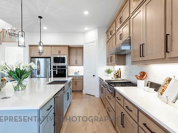 Gorgeous white brick home featuring an open concept floor plan, soaring ceilings, brick fireplace, and plenty of space for everyone! Kitchen includes designer tile backsplash, gas cooktop with separate oven and microwave, and an expansive quartz island. Enjoy entertaining on the extended covered patio! The primary suite showcases a bay window, separate shower with freestanding tub, dual sinks, and vanity.