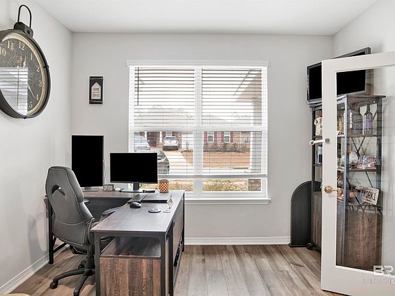 Come see where modern design meets comfort in this beautifully upgraded home! This open-concept Clover floor plan offers a seamless flow from the moment you step inside.Upon entry, you'll find a dedicated home office on one side and a private alcove featuring a guest bedroom and full bath on the other. The home then opens up to a formal dining room with an elegant coffered ceiling, leading into a spacious great room that seamlessly connects to the kitchen and breakfast nook. The chef’s kitchen boasts a stylish backsplash, quartz countertops, and an upgraded fingerprint-resistant appliance package.The primary suite is a true retreat, featuring a coffered ceiling and a luxurious ensuite bath complete with a tiled shower and garden tub. A third bedroom is conveniently located near the garage entrance, with another full bathroom nearby.This home features EVP flooring throughout with plush carpet in the bedrooms. The owners have added custom upgrades, including a built-in entertainment center with an electric fireplace, custom barn doors, additional garage shelving, an extended outdoor patio, and a fully fenced backyard.One of the best features? This property backs up to protected land that will never be developed, offering privacy and serene views!Don't miss your chance to own this stunning home—schedule your showing today!Buyer to verify all information during due diligence. Buyer to verify all information during due diligence.
