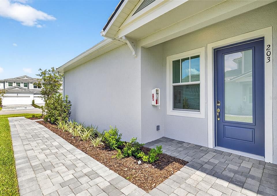 The Oceangrove II plan is the largest coach home available in the community with 2 bedrooms, 2 baths, a study, a 2-car garage, and condominium ownership. This open floorplan offers optimized living spaces and is perfect for entertaining guests for a few hours or days. The entrance of this home features a welcoming covered entry or convenient owner's garage access. The main living area is just up the stairs. The designer kitchen is adjacent to the dining area and Great Room. It features an island with a breakfast bar that will seat up to 5, cooktop with stainless vent hood and wall oven/micro combo. There is a full set of 42" upper shaker style cabinets on each side of the vent hood, which also provides an abundance of counter space. The extended island also provides more prep space. There is also a walk-in pantry that lends itself to plenty of space for food and accessories. The dining room is adjacent to the kitchen in its own space and the Great Room is completely open to both areas, making it easy for conversation and enjoyment to flow freely throughout the spaces. A covered balcony is located just outside the Great Room and provides the opportunity to enjoy the beautiful Florida weather and air. The primary suite is a quiet retreat with a well-appointed primary bath with glass enclosed shower with built in ledge and extensive walk-in closet. The secondary bedroom is located on the front of the home, just across from the second full bath that features a convenient tub and shower combo. The study includes a closet and provides a versatile space for a home office, den or 3rd bedroom. Stylish shaker style cabinets in pure white and contrasting countertops in Soapstone quartz throughout. Luxury vinyl plank flooring covers the main living area and study, while the bedrooms have plush carpeting. The home also uses impact windows for safety. Featuring ClareOne Smart Home Technology package that connects to video doorbell, garage door and front door lock. Photos, renderings and plans are for illustrative purposes only and should never be relied upon and may vary from the actual home. Pricing, dimensions and features can change at any time without notice or obligation.