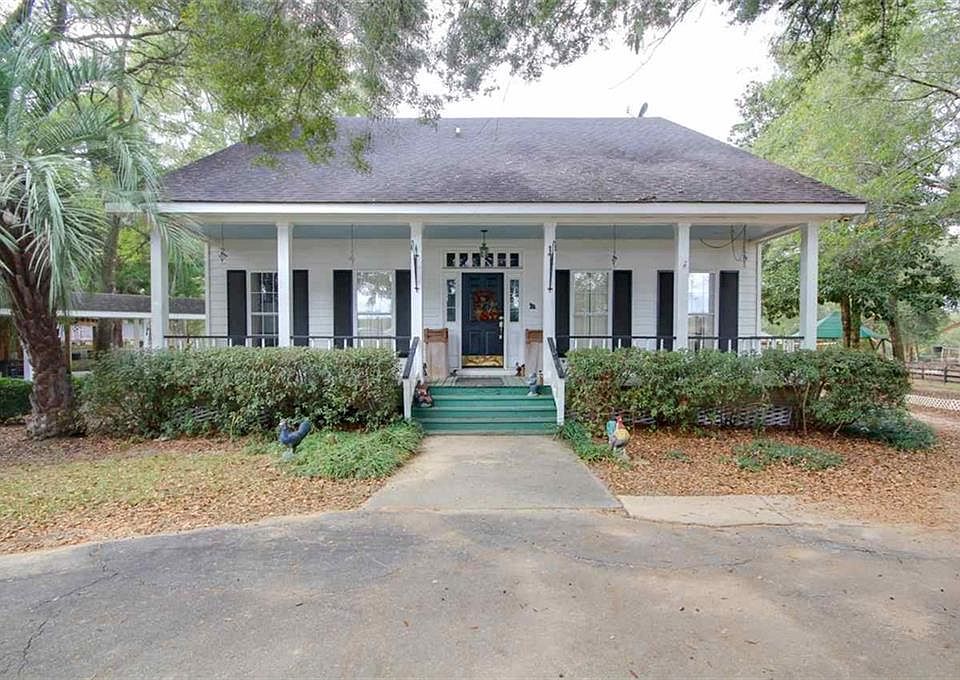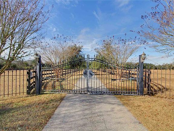 Total of 16 Acres for sale surrounding a beautiful creole style farmhouse. If you are looking for un-zoned property within Baldwin County this Estate may be what you are looking for. Located behind ornamental iron gates with an oak tree lined paved driveway this newly renovated Estate overlooks pasture land, fountains, 3 car garage with motor home spot, 4 stall barn, tack room, feed room and multiple outbuildings. The 4 bedroom, 3.5 bath home has a wood burning fireplace and wonderful sun room overlooking gardens, there is a 1 bedroom, 1 bathroom guest Cottage/Mother-in-Law Suite on the property. Renovations completed in 2025 includes new appliances, paint, trim with custom cypress, upgraded electrical, new gate, and new roof with bronze certificate in 2022. This property has a main house, 4-car garage, pool house, 55x20 pole barn, 12x24 storage room, 12x20 breeder room with incubator, 60x20 horse barn, 24x20 chicken house & 32x20 tractor storage shed. The 16 Acres consists of 2 parcels PPIN# 10908 = 10 +/- Acres & PPIN 10906 = 6 +/- Acres. Agent is related to seller. Buyer to verify all information during due diligence.