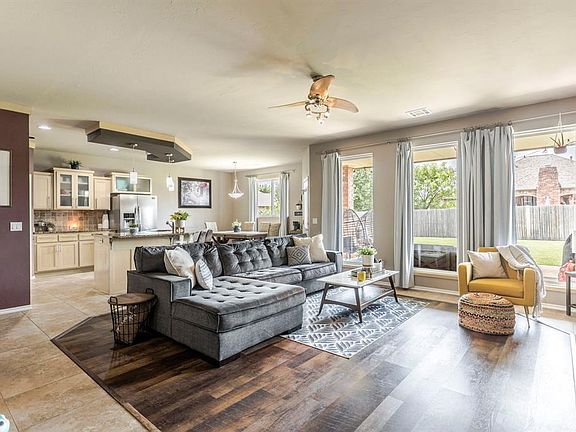 Contemporary Design, Edmond Schools, Prime Location! This stylish Jeff Click home in an Edmond school neighborhood with OKC utilities offers a flexible split floor plan, modern updates, and quick access to the Kilpatrick Turnpike, shopping, and dining. This home offers a modern living space, with a dedicated private office, open concept living, dining and kitchen area and 3 bedrooms. Large primary bedroom suite features a raised ceiling and bay windows, a soaking tub, walk-in shower, dual vanities, and a large closet that connects to the laundry room. 2 additional bedrooms with a full bathroom. Good-sized backyard and covered patio for outdoor activities and entertaining. Sprinkler system. Oversized 2 car garage with additional work or storage space. Walking access to neighborhood pool, clubhouse, and West Field Elementary via private sidewalk. Schedule your showing now!