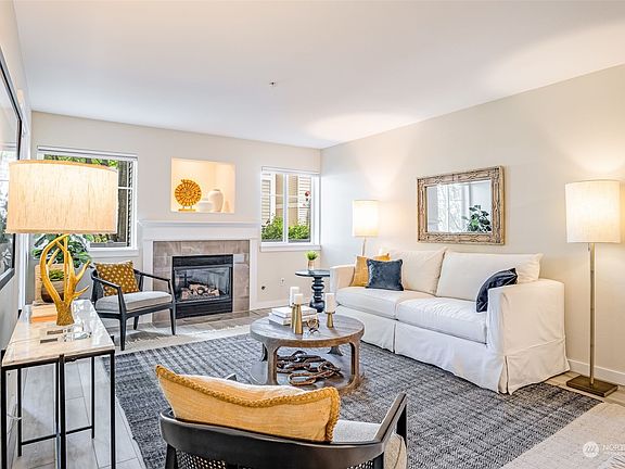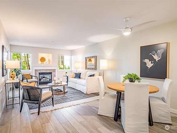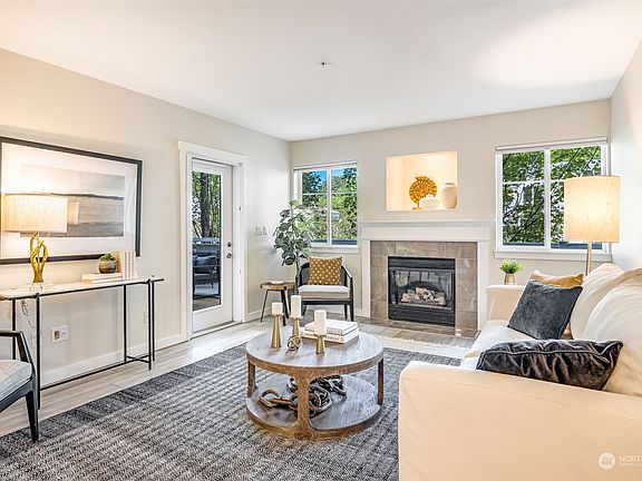 Thoughtfully renovated throughout, this open concept condominium has it all. Nestled next to the Sammamish River with access to nature trails. Minutes to downtown Bothell, bike the Burke Gilman or Sammamish River Trail to your favorite brewery, or access river from community dock, launch your kayak & paddle into Woodinville for lunch. Recent updates include kitchen with solid wood cabinets, quartz countertops, newer stainless apppliances, gas fireplace & hot water tank & painted millwork/trim throughout. Primary suite with large custom built out walk in closet & updated bath. True entertainment sized deck off of living area. Large storage room next to unit. 2 parking spots & elevator building. NO Rental Cap!