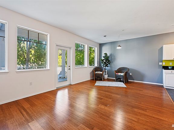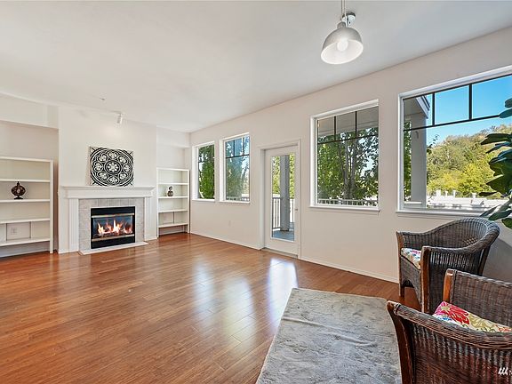 Amazing Living at Riverfront Landing is truly an experience! Discover miles of trails and parks accessed from the Sammamish River. Enjoy this light filled 2bedroom condo with 9ft ceiling is move-in ready. Open Floorplan boasts hardwoods throughout, a large kitchen with lots of cabinet / counter space and large master suite. Huge primary bedroom with walk-in closet, views from every window. Enjoy a private deck, kayak storage & trail that can lead you to Main St, Parks or the Burke Gilman Trail. Gated/secure garage with w/secure parking for 2 cars & a large storage space by the front entry. Walk, Bike or Float to your favorite Bothell restaurants! Well run HOA, pets ok, no rental cap. Commuting is a breeze!