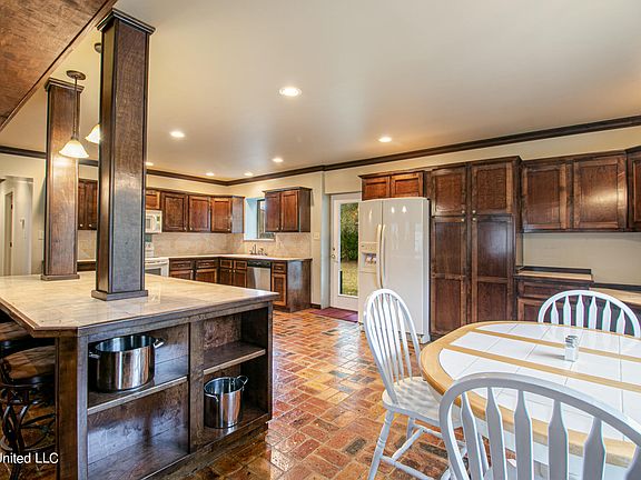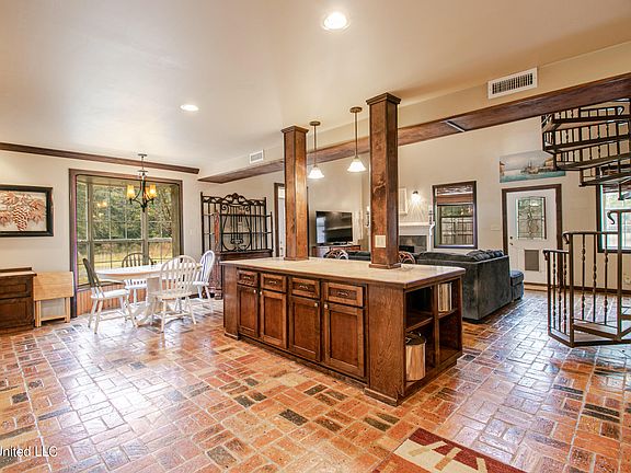 - Beamed Ceilings, Crown Molding, Eat-in Kitchen, His and Hers Closets, Kitchen Island, Natural Woodwork, Open Floorplan, Storage, Tile Counters
