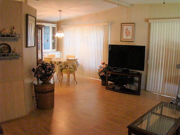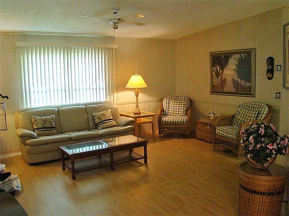 -SEMINOLE COVE~ This lovely 2bd/ 2Ba DWMH has a den w/ hideabed that can be a 3rd bedroom. Open plan, eating deck in kitchen. Beautiful NEW vanities. Lots and Lots of storage. Built in buffet in dining.1464 Sf under air-2496 TLA. Furnished. Front screened Lanai for people watching or just enjoying the Florida weather. 12x15 Workshop and 11x12 (with 4 Ft door) golf cart or motorcycle garage. Metal Roof. Parking for 3 vehicles. 55+, Community pool, Clubhouse, activities