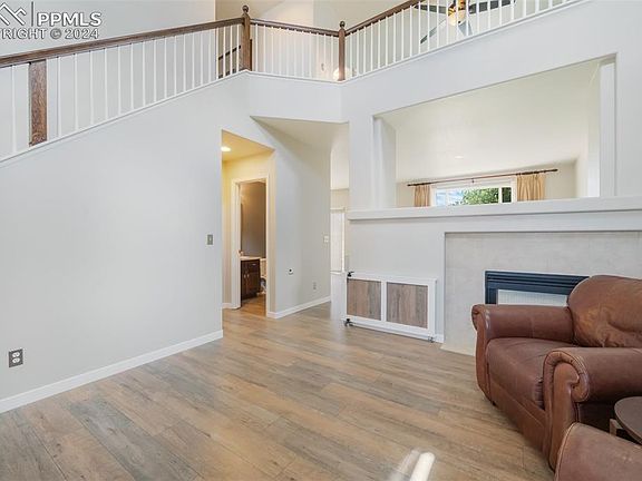 Welcome to your future home in the desirable Claremont Ranch neighborhood. Ideally situated near Peterson Space Force Base, this location offers convenience and a vibrant community feel. Nearby shopping, dining, school and park offer you endless options to explore. This spacious home features 3 bedrooms and 3 bathrooms a 2 car garage and a full unfinished basement with room to grow. Upon entering, you are greeted with an open concept living area with a double sided fireplace. The fireplace is shared with a large flex space that can be used as a office, playroom, or additional living area. This area is open to a dining area as well as a large kitchen with stainless steal appliances. The dining area also offers a walk out to the large fenced backyard with concrete patio and in-ground trampoline. The main level also has a powder room half bath as well as a good sized laundry room. Upstairs you will find yet another living area in the form of an open loft room. The upstairs offers two bedrooms with a full bath as well as a large Primary Suite with yet another attached full bath. This home is well kept and you can see the pride in ownership, with many updated amenities and room to grow - what more is there to offer?