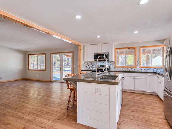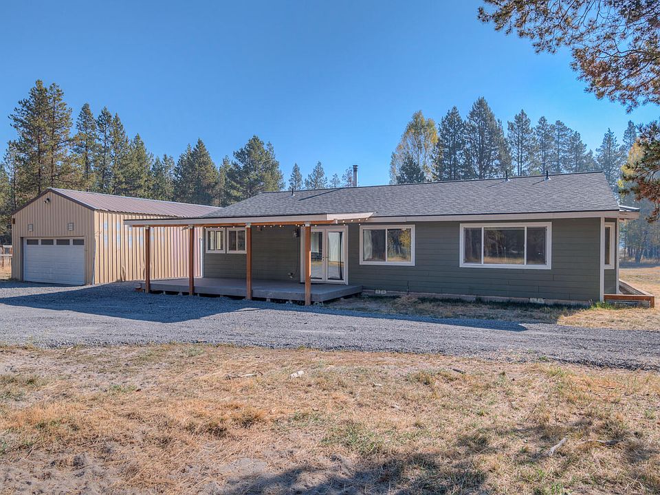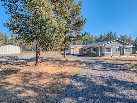 One-level home on 2.79 acres! This updated 2-bedroom, 2-bathroom home features an additional office/den. The open floor plan is flooded with natural light, creating a warm and inviting atmosphere. Recent upgrades include central heat and AC, heat pump, a newer roof, a full kitchen remodel, updated electrical panel, new flooring, doors, siding, and windows—everything you need for modern comfort. The property is fully fenced, ideal for privacy and security, and includes a large, 3-sided loafing shed, perfect for horses or other animals. A spacious shop with 220V power is ready for your projects. Located near the Little Deschutes River, you'll enjoy abundant wildlife and peaceful surroundings. Just a short drive to Sunriver, Mt. Bachelor, and the lakes.