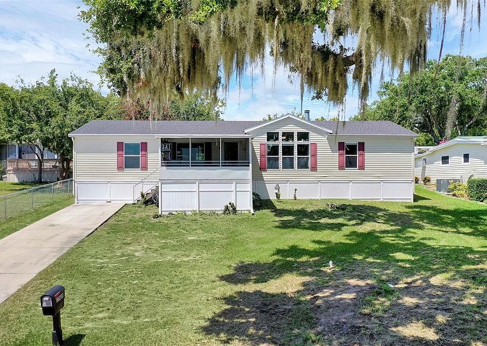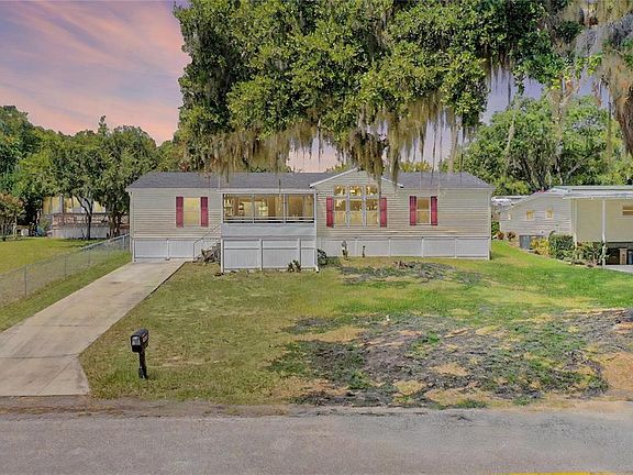 Discover the potential this oversized 3 bedroom, 2 bath manufactured home has with peaceful views of Lake Apopka and more! Offering a spacious layout and plenty of natural light the huge front windows that overlook Lake Apopka will give you views for days! New roof in 2022, Straps replaced in 2024, AC 2018 so the big ticket items are done. The primary suite provides a private retreat with a large ensuite bathroom and massive walk in closet, while the split floor plan ensures space and comfort for family or guests. The second bathroom and flooring are in need of renovation, making this the perfect opportunity to customize the home to your taste and style. Relax on the large screened in front porch while enjoying serene lake views. With a little TLC, this property could shine as your full-time residence, weekend getaway, or investment opportunity near the lake. This is a cash only purchase due to relocation. Located in a non HOA community with no restrictions. Bring your vision and unlock the full potential of this oversized home with Lake Apopka views, it’s ready for its next owner to make it shine.
