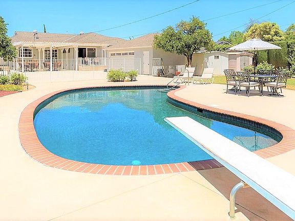 LOVE TO ENTERTAIN? Don't miss this terrific ranch style pool home with enormous, park-like yard. and extra large detached garage- great for a possible ADU! Located in highly sought after Granada Hills Charter High School boundaries, this 4 bd 3 ba home is not to be missed. The deep, spacious, circular driveway can hold approximately 7 cars! Upon entry through the quaint front porch, you step into the bright and open living Room with formal dining room displaying french doors that open to a covered outside dining area, with views of the gorgeous backyard. This is your indoor/outdoor California living experience! Spacious kitchen boasts hardwood flooring, granite countertops, stone backsplash, and bay window. The kitchen breakfast bar overlooks a huge family room with cozy fireplace. Family room displays a cool cabin like feel with beautiful hardwood on walls, and ceiling, or one could paint it white for an even larger and brighter look! Large master bedroom with en-suite bath shows a walk in closet and sliding French door which leads to own master bedroom patio for viewing yard. There is an additional 3 bedrooms and two more bathrooms. The backyard boasts a gated pool, another large covered sitting area, fruit trees, garden and grassy areas, gigantic concrete patio, large driveway with RV parking and two storage sheds . Don't wait! Call for showing!