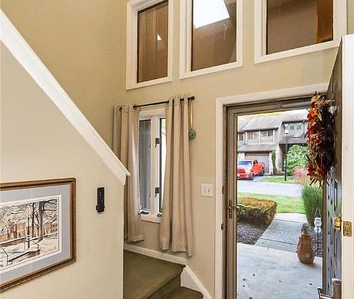 Wonderful opportunity to own this care-free condo in desirable Eagle Trace! As soon as you enter, this feels like home! The 22 ft vaulted ceiling offers a bright and airy foyer. Look up and admire the newly installed 72” fan that allows fresh airflow throughout. The living room is cozy and flows effortlessly into the kitchen. This open concept is sure to please! Right off of the kitchen is the dining area which overlooks a spacious and serene deck. A 1/2 bathroom, and closet for storage complete this level. Upstairs you can retreat to the master bedroom that has Beautiful sliding barn doors to the big closet perfect for your array of fashion. There are two additional spacious and well lit bedrooms for you to enjoy. The full bathroom has recently been professionally and completely remodeled, and features a dual sink, walk in tile shower, and all the modern taste and amenities you desire! The unfinished lower level is great for storage, or awaits your customization. The laundry is also housed in the lower level. This meticulously maintained home is conveniently located near Route 22, 191, shopping, eateries, and the areas best healthcare! This is the home you have been waiting for!