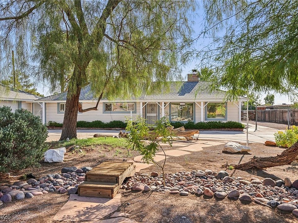 Truly a rare find! ** 1.75 Acre horse property ** This lot spans an entire block with access from both sides ** 3 homes on the property ** MAIN HOUSE – 1,275sq ft, 3 bedrooms / 2 bathrooms ** GUEST HOUSE – 1,008sq ft, full kitchen, 1 bedroom / 1 bathroom ** STUDIO – 575sq ft, kitchenette, 1 bathroom ** 5 total bedrooms – 4 total bathrooms ** 8' deep pool ** Oversized garage with generous storage ** Circular driveway ** Property offers an aviary, stalls, paddock & tack room ** Ample space to put barns, arenas and turnouts ** Very clean & tidy estate ** Fully fenced ** Convenient location close to Ed Fountain Park, Las Vegas Golf Club, freeways, shopping, restaurants etc.