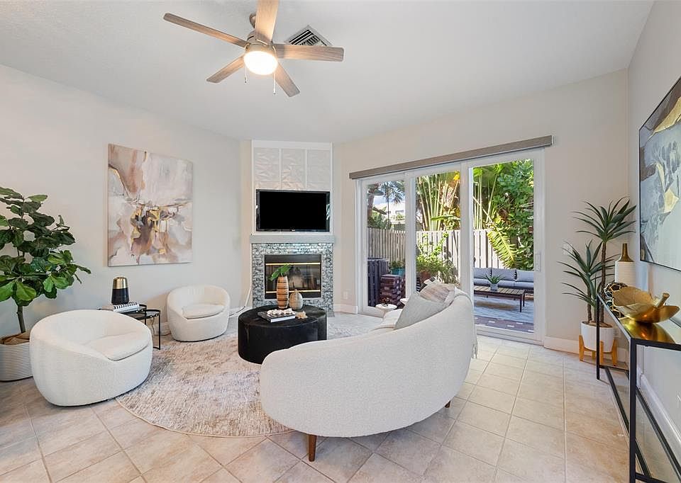 Bright and spacious interior corner townhome in gated Villa Victoria. Enjoy three sun-filled exposures, 10’ ceilings, impact windows and doors (2021), updated interiors, newer AC (2022), and many newer appliances. Private gated courtyard entry opens to foyer, sunny breakfast room, and large living/dining area with fireplace. Tropical, low-maintenance backyard is ideal for entertaining. Upstairs features two large ensuite bedrooms with generous closets; the primary offers a balcony overlooking the pool. Pet friendly and perfectly located near Las Olas, beaches, parks, shopping, and dining! Rare opportunity to own over 1,500 square feet of living space in sought after Victoria Park for under $600k!!
