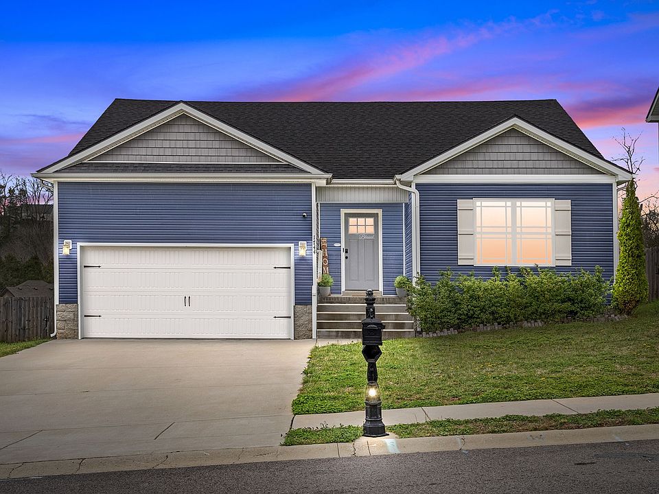 Where style, comfort & functionality come together. This 3 bed 2 bath ranch home is a true gem, offering the perfect blend of convenience & charm. You're welcomed by an oversized entryway that seamlessly flows into the living room. You'll be captivated by the the open concept floor plan & cozy fireplace creating a warm & inviting atmosphere. Perfect for entertaining & everyday living. Spacious kitchen w/ eat-in, granite countertops, large pantry & SS appliances. The primary suite is a true sanctuary providing a peaceful oasis for relaxation. Featuring tray ceilings, walk-in closet, separate shower & soaker tub! Split bedroom floor plan & separate laundry room. Don't forget to take a peek at the HUGE backyard (extends beyond fence) w/ privacy fence & covered deck. Ready for your summer BBQ's & get togethers. Located in the desirable Autumn Creek subdivision giving you easy access to I-24, Fort Campbell, shopping, dining & more. Seriously, what are you waiting for? Come see it today!