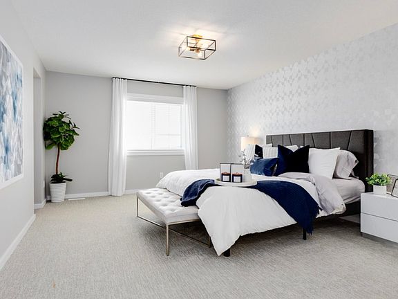 SOPHISTICATED UPGRADES | WALKOUT BASEMENT WITH POND VIEW | PIE LOT | CUL-DE-SAC. Homes By Avi welcomes you to picturesque Marquis West with this exceptional 2 storey with room for every family member to live comfortably. Stunning details throughout this 3 bedroom (all w/WIC’s), 2.5 bathroom home showcasing desired dreamy neutral palette & black hardware package. 2340 SQ FT above grade boasting vinyl plank flooring, plush carpet, finished stairs to basement, electric f/p & oversized windows in GREAT ROOM, plus chef’s kitchen w/42" upper cabinets, chimney hood fan, gas rough-in & robust appliance allowance. Upstairs, the king-sized primary retreat offers a 5-piece ensuite w/soaker tub, dual sinks & walk-in shower. Two add'l bedrooms, add'l bath (w/dual vanities), laundry room & cozy family room (w/conduit for future wiring) complete the upper level. Full 24’ wide back deck offers great entertaining space for all seasons. Double attached garage & prime location close to schools, shopping & parks. MUST SEE!