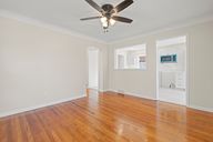 This charming home features 3 bedrooms and 2 full bathrooms with a semi-open concept layout that blends comfort and style. Enjoy a welcoming front porch and a spacious living room that flows seamlessly into the fully updated kitchen, complete with new cabinets, granite countertops, and stainless steel finishes. Hardwood floors run throughout the first floor, complementing the modern, updated bathroom and two nicely sized bedrooms. The large primary suite occupies the entire second floor, offering privacy and space. The basement includes a full bathroom, recessed lighting, and is ready to be finished for additional living space. Additional updates include new plumbing (2025), a new roof (2025), and a newer garage door. Certificate of Occupancy will be provided at closing—move-in ready and beautifully done!