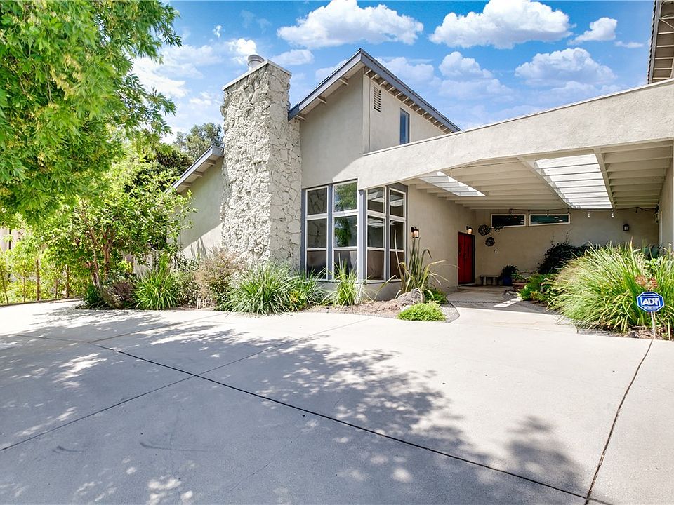 Mid Century Modern single story executive home located at the end of the Cul-de-Sac in the desirable neighborhood of North Granada Hills. This property has been recently updated and features a wonderful open floor plan with high ceilings and an abundance of natural light beaming throughout. Kitchen has been designed with the gourmet chef in mind complete with ample counter space, large Kitchen Island with sink, breakfast bar with optional under counter seating, additional counter base sink, oversized refrigerator, gas cook-top with hood venting, and extra cabinet storage. Formal Living Room features high cathedral ceilings, raised hearth fireplace surrounded by beautiful stone features. Master Bedroom and Bath have been designed with luxury features offering the homeowner a tranquil environment to relax and wind down the day. Additional bedrooms are generous in size and include built-in cabinetry. The Family and Dining Rooms are just off the Kitchen making this ideal for hosting family gatherings at the holidays. As you stroll outside to relax under your covered patio you can gaze upon the many fruit trees that grace the back-yard landscape and provide a bountiful harvest throughout the year. There is also an in-ground pool and spa and sports court adding variety to the property. The large side yard is capable of hosting RV or additional vehicle parking. There’s still more…Owned Solar Power and an electric vehicle charging station and huge storage room. This property is located north of 118 Frwy in the coveted Granada Hills Charter School District making this ideal for those looking for a charter school learning environment for the kids. Don’t miss out on this beautiful Mid-Century Modern Classic.
