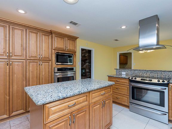 A wonderful property for those looking for a spacious home -2,936 sq ft living space, on a 1 acre lot, and in a quiet location – Wirth Place. You will love the beautifully updated kitchen with granite counter tops, island, electric range oven and second wall oven, stainless steel appliances, and lots of upper and lower cabinets. Energy efficient double pane windows throughout. No carpet – ceramic tile flooring throughout. The Primary Suite is SPACIOUS, with en-suite bath featuring a double sink vanity, tub/shower combo, and walk-in closet. The three guest bedrooms are all good sized with ceiling fans and ample closet space. The hall bathroom has a large vanity with granite countertop and a tiled walk-in shower. The large Living Room has a vaulted beamed ceiling and large brick hearth fireplace with built-ins on both sides. There is also a large (20 x 22) Den/Rec Room that can be used in any number of ways. The lot measures approximately 200’ wide by 218’ deep – the peaceful backyard is huge. There is a nice screened back porch to relax and enjoy the view. Two car attached carport plus LOTS of additional parking space.